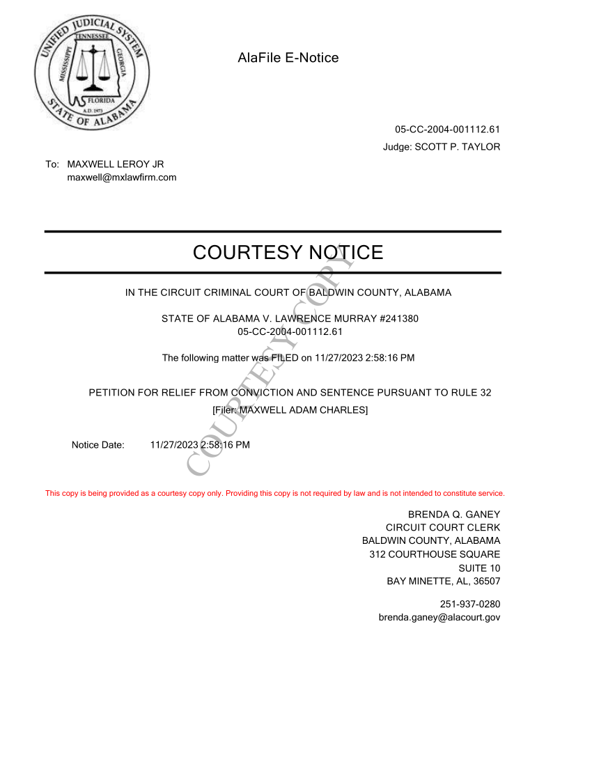 The local Baldwin County press and Alabama independent internet journalists sites, have been reluctant, scared, to cover the blatant corruption of the Baldwin County Sheriff or any elected officials involved with this case. Only Lagniappe and the The Ripp Report as well as social media sites, facebook and blogs have been covering the wrongful conviction of Murray Lawrence who is being represented by Attorneys Maxwell/Tillman, Birmingham,Al.